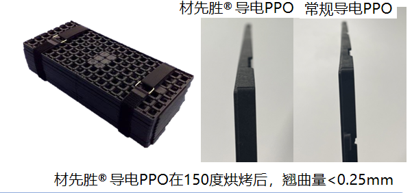 材先勝? PPO電子托盤系列材料,主要特點(diǎn)是電阻均勻穩(wěn)定,能夠最大程度的保護(hù)電子器件。但是尺寸穩(wěn)定性低,翹曲,和外觀問題卻存在很多問題。